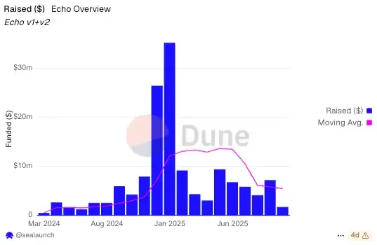 Echo 是一个链上资本继承平台,由知名加密交易员 Cobie 创办,旗下有 Sonar 公募工具。Echo 已帮 300 余个项目募资超 2 亿美元,比如 Plasma 的 XPL 代币销售。