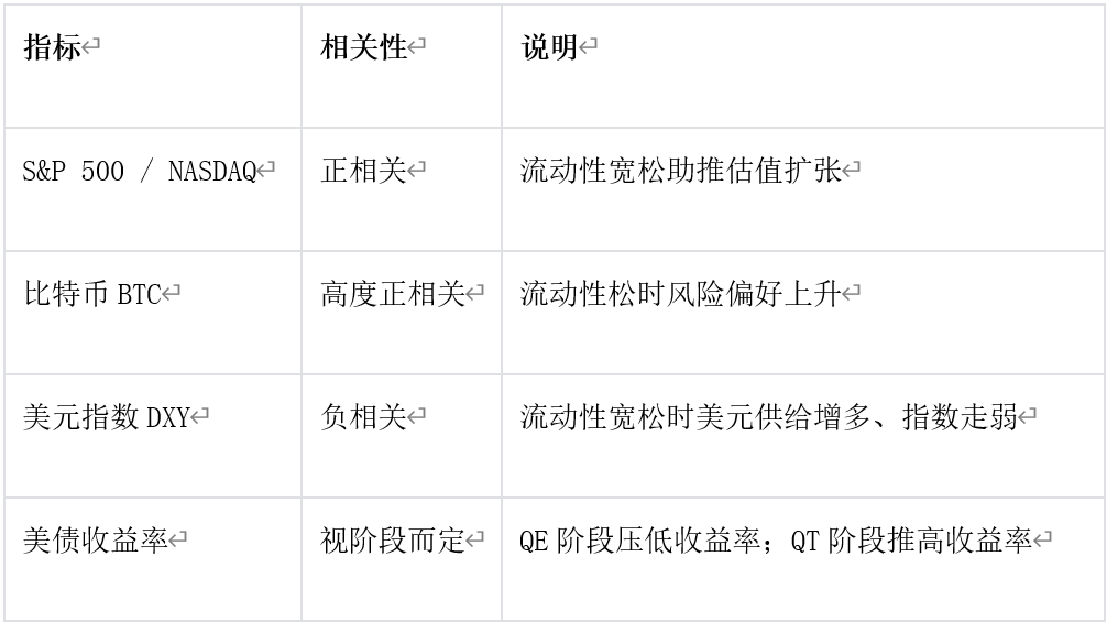 美联储扩表→ 增加准备金与现金→ 流动性增加例如QE(量化宽松)时期,美联储购买资产增加银行准备金。