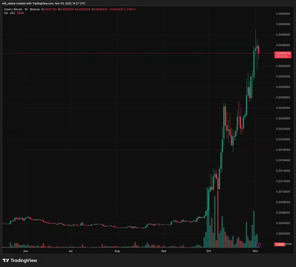 如今仅看 ZEC 的价格走势,就已经讲述了一个完全不同的故事。