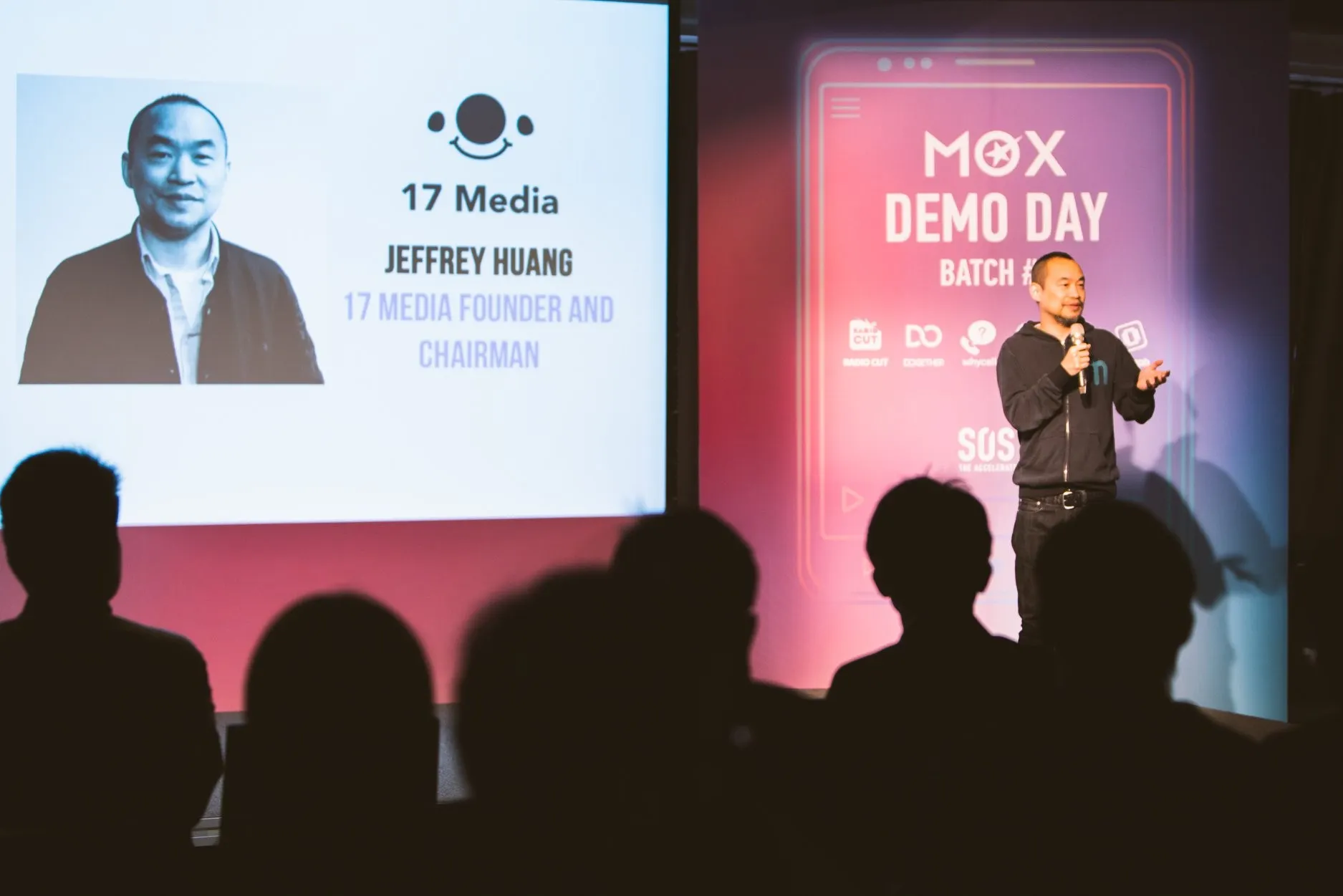 黄立成以 17 Media 创始人身份在 MOX Demo Day 上演讲
