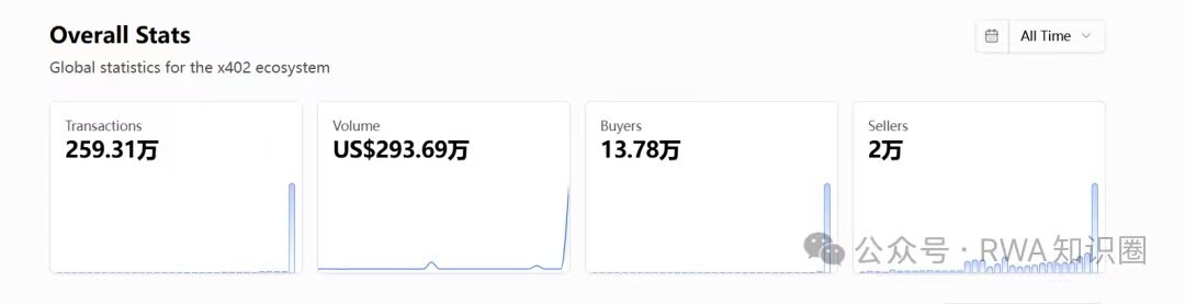 - 生态系统共记录支付 2,593,100 笔,总支付金额约 293.69 万美元;