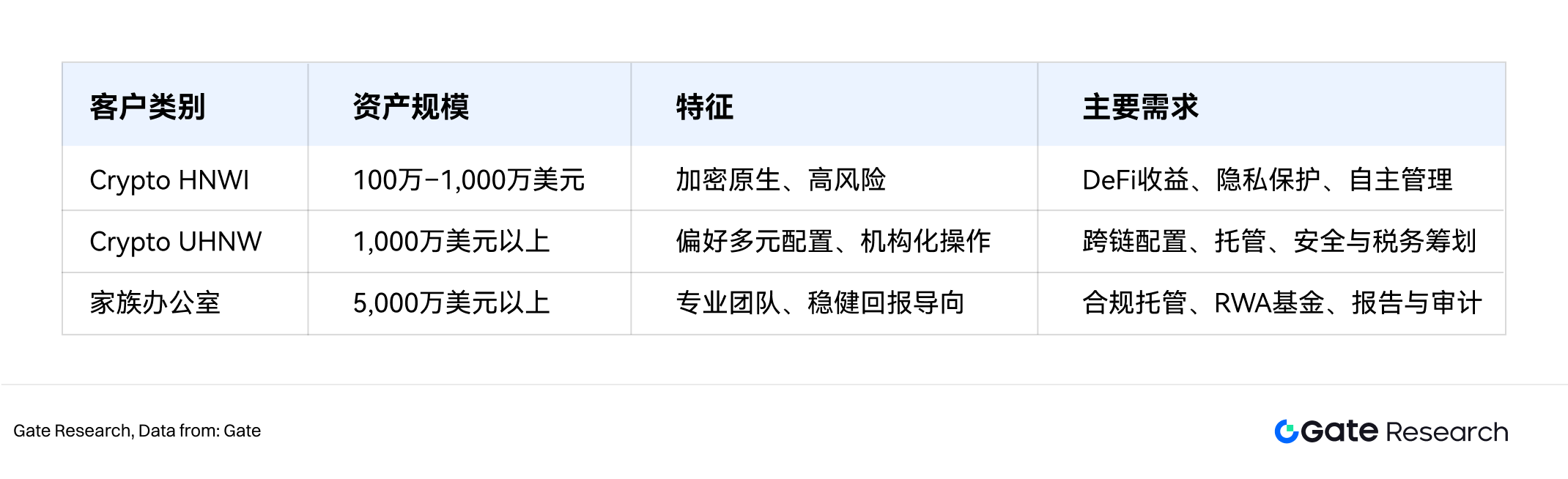 与传统 PWM 相比,加密 PWM 的客户更加年轻化、技术导向明显,并且具备较高的数字金融知识。其需求不再局限于“信任顾问”,而更倾向于“可验证系统”。