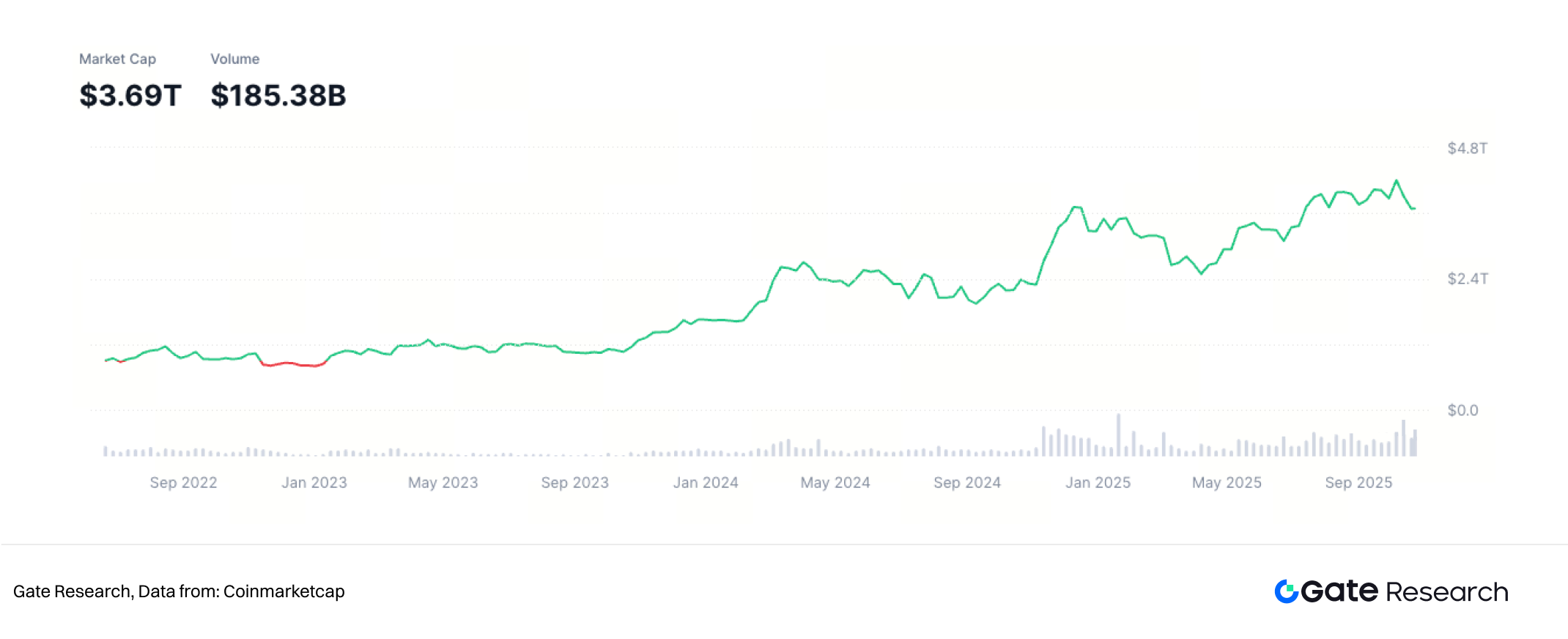 截至 2025 年 10 月,全球加密资产总市值约 3.7 万亿美元,全球加密用户约 6 亿人,其中亚洲地区占比接近 45%。DeFi 生态总锁仓量(TVL)约 1,200 亿美元,主要集中于以太坊、Arbitrum、Solana 等主流网络。稳定币市值约 1,600 亿美元,成为加密资金流动的核心媒介。当前数字资产已从投机性投资工具逐步演变为机构配置资产,越来越多的银行、家族办公室与对冲基金开始涉足加密资产管理。