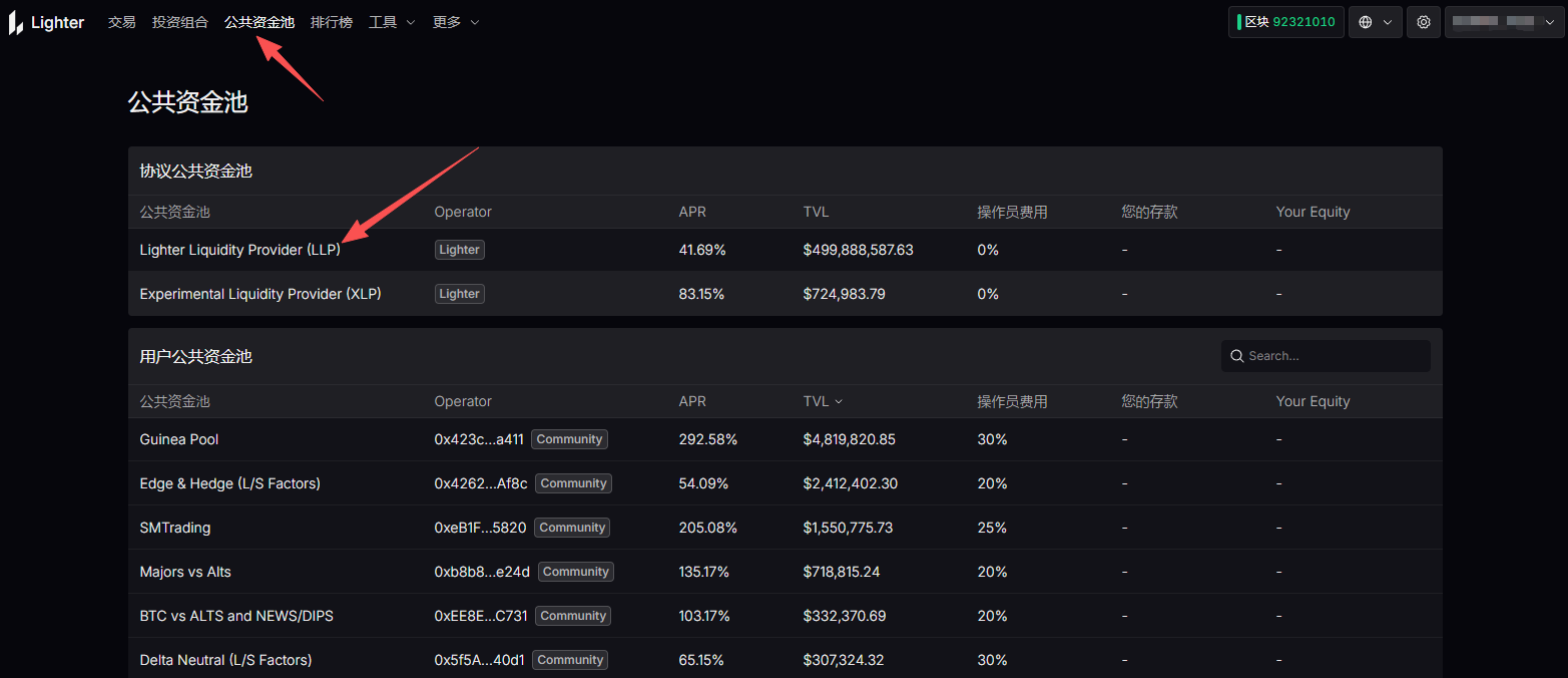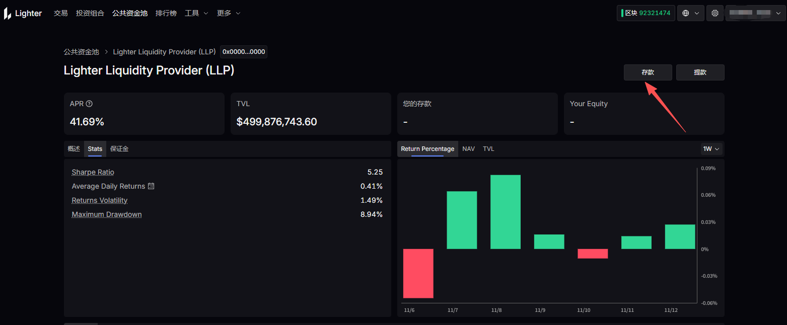STEP 2. 点击“公共资金池”后选择 LLP,存入资金,即可开始交易赚积分。