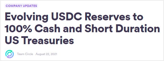 上图:Circle 于8月22日通过官方博客表示,USDC 的储备资产将100%转变为现金和短期美国国债。来源:https://www.circle.com/blog/evolving-usdc-reserves-to-100-cash-and-short-duration-us-treasuries