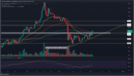 12 月 2 日,该资产果断突破了 128 美元的设定阻力颈线,引发了其当前价格走势模式带来的看涨行情。