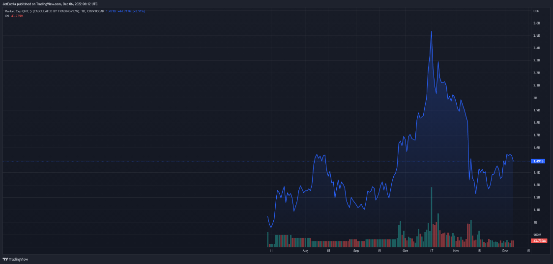 交易所崩溃后,QNT 受到重创,在 11 月 14 日一路下跌至 95.28 美元。从那时起,该数字硬币在反弹以收回并维持 100 美元区域方面做得很好。