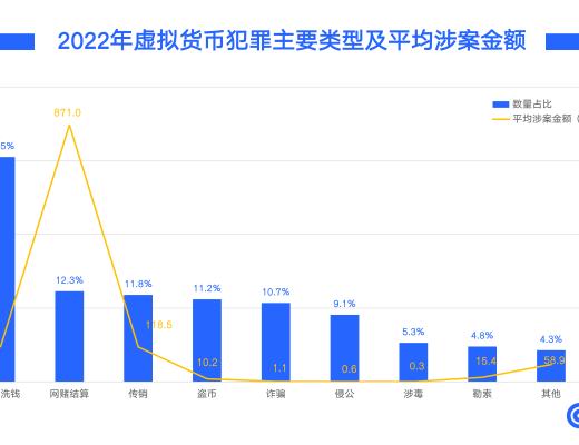 近日,知帆科技、知帆学院发布了《2022年区块链与虚拟货币犯罪趋势研究报告》(下称《报告》)。《报告》指出,2022年,虚拟货币诈骗洗钱类和网赌结算类是主要的虚拟货币犯罪类型;网赌结算类案件的平均涉案金额最高,达到8.71亿元;虚拟货币传销类案件数量和涉案金额下降;TRC20-USDT是涉案比例最高币种;虚拟货币传销项目周期缩短,整体资金规模下降等。