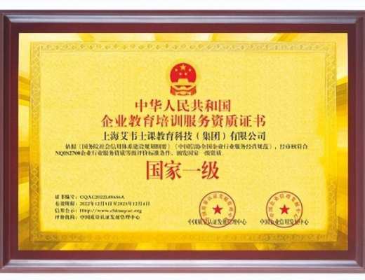艾韦士课教育科技集团通过专家评审再添新资质近日,艾韦士课教育科技集团通过NQIS2700企业行业服务资质等级评价标准认证,成功获得企业教育培训服务国家一级资质。