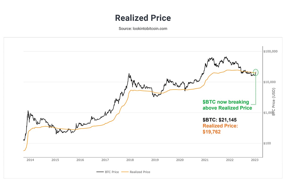 在低于实现价格几个月后,尽管有些短暂波动,但20%的涨幅直接使得价格来到了实现价格指标上方。如下图:
