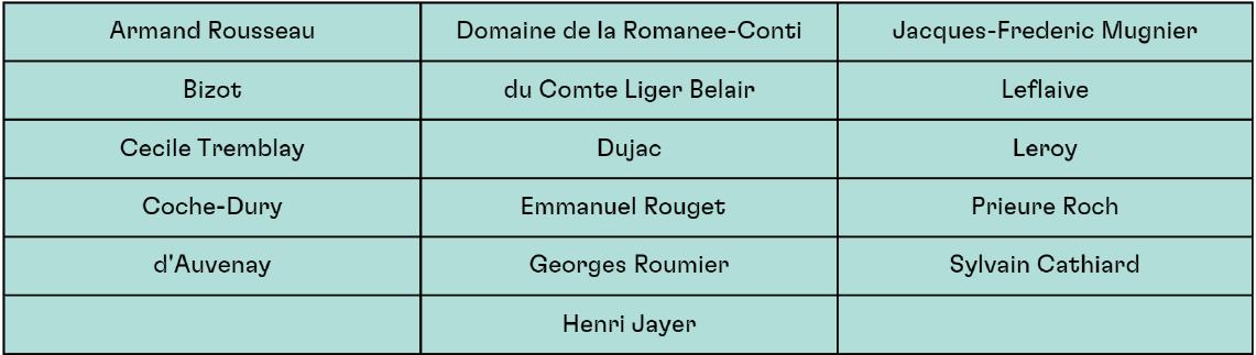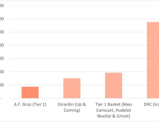 比起前一张表格的顶级名家们,这些酒庄可能只是略微小众一些,品质大多没什么可以挑剔的。这张表格里有好几位出品Richebourg特级园的酒庄,其中A.F. Gros 家的很值得关注 —— Richebourg这块8公顷的葡萄园可谓是寸土寸金,而A.F. Gros家的价格还在1000英镑以内,大概是DRC的1/6。
