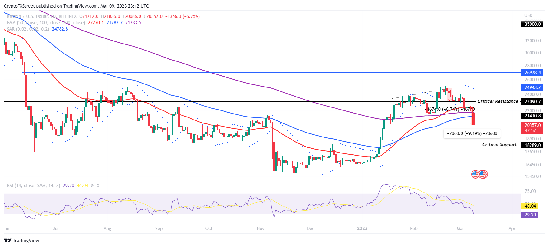由于拜登预算 ,Silvergate 银行倒闭和宏观经济担忧, 比特币价格暴跌至 20,300 美元