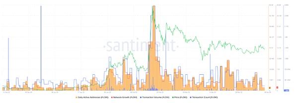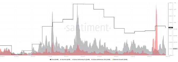 在以马斯克的狗命名的模因硬币中,在日活跃地址和交易量方面也出现了类似的趋势。价格飙升推动指标走高,表明 FLOKI 持有者的兴趣和活动,而价格下跌则与活动较少的时期相吻合。