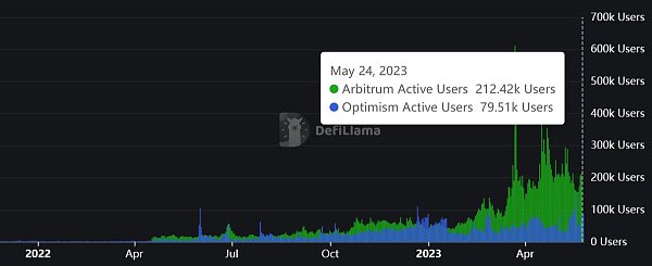 今天,Arbitrum 上的活跃用户几乎是 Optimism 上的 3 倍。