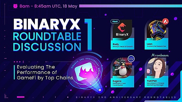 Moonbeam中文市场经理Yuki Pan参与了BinaryX 2周年圆桌会议,共同探讨顶级区块链GameFi的表现评估。