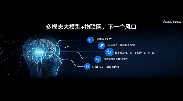在三六零智慧生活集团视觉大模型及AI硬件新品发布会上,周鸿祎宣布发布“360 智脑 - 视觉大模型”。他表示,大语言模型是构建视觉大模型的基础,多模态能力增强的核心是借助了大语言模型的认知、推理、决策能力。视觉大模型是“360 智脑”的重要能力组成,使其能看懂图片,未来看懂视频、听懂声音。周鸿祎认为,目前大模型的能力主要体现在软件层,接入智能硬件后,会让大模型的能力从数字世界走向物理世界。
