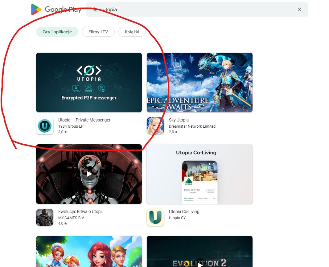 请在谷歌应用商店里搜索Utopia p2p。输入:Utopia-Private Messenger(1984 Group LP)来找到它。