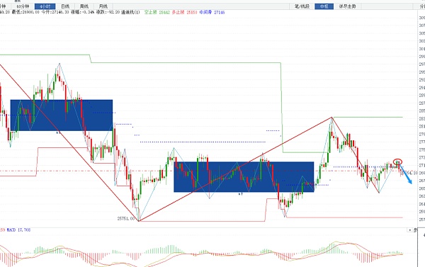 30分钟级别反弹一段可以结束,出现30分钟3卖,继续空头延续;一笔下有力打下中枢,弱反弹不出新高则继续空