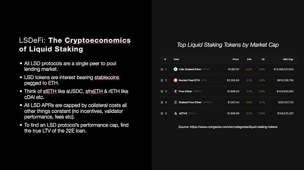 很明显,设计最为去中心化、通用、多功能的LSD协议的方式是创建一个点对池借贷市场。贷方的凭证代币就是LSD/稳定币。借用验证者的贷款条件基于贷款价值比(LTV),就像Aave或Compound一样。