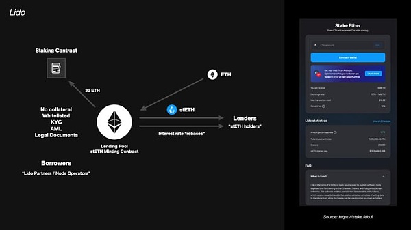 出借人借出ETH并获得票据代币(LSD)。借款人租用运行验证器的权利并向贷方支付利息。
