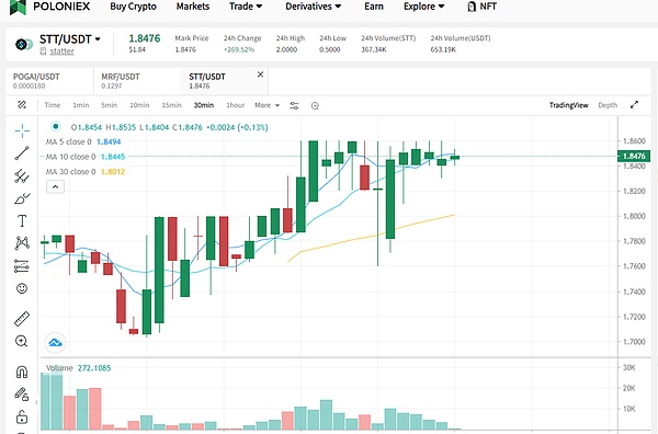STT(Statter公链)上线P网交易所(Poloniex),涨幅达300%