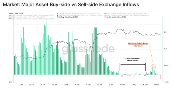 除了市场流动性收紧外,交易所资金流入还表明卖方压力增加,而稳定币之外没有买方压力。