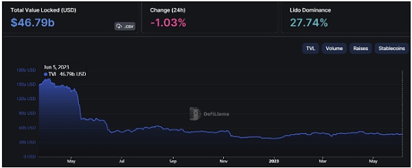 以太也存在类似的担忧在Shapella 升级后交易价格高于 2,100 美元,随后在 5 月 24 日创下 7 天低点 1,794 美元。经济低迷是因为以太汽油费在 5 月的 memecoin 狂潮之后降温。
