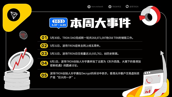 波场TRON本周(2023.05.27-2023.06.02)大事件抢先一览