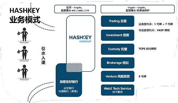 通过上述分析,将 Hashkey Group 的业务模式套用到 Coinbase 的框架之中,我们看到已经基本形成了一个相对完整的合规 CEX 业务模型,并且每一块业务都能够对应到相应的监管框架中,如虚拟资产的出入金(与银行合作)、证券型代币的交易(1 号牌 + 7 号牌)、非证券型代币的交易(VASP 牌照)、虚拟资产托管(TCSP 牌照)、风险投资(9 号牌)。可见港府 VASP 新规直接将矛头对准 CEX 是多么快准狠。