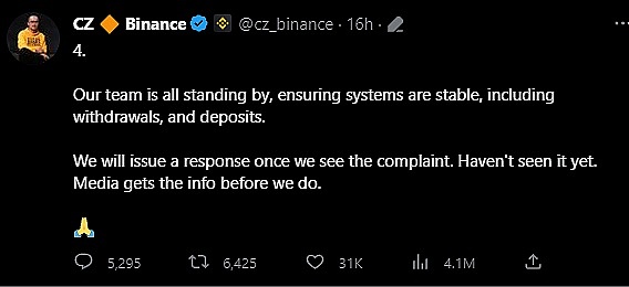 另外,CZ和币安的反应速度之快表明他们有情报、沟通、准备和预案,我相信币安能够妥善解决问题,我对CZ充满信心。