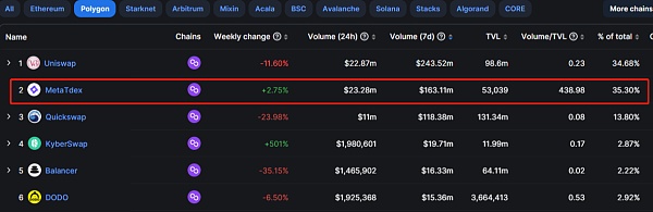 MetaTdex是Polygon链综合实力排名前三的DEX