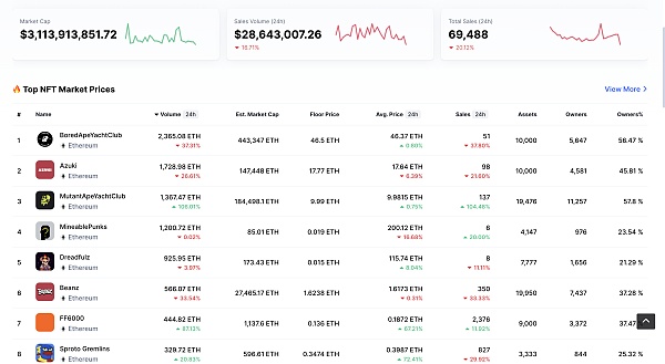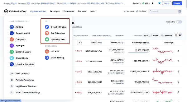随着最近 2 年 NFT 领域的繁荣发展,NFT 资产已发展成为加密资产中的大类资产,作为全球最大的加密行情网站,CoinMarketCap 平台也随之上线了 NFT 板块的资产数据分析和追踪功能。现在,用户可以通过 CoinMarketCap 平台直观地获取 NFT 市场的 marketcap 数据,以及蓝筹 NFT 资产的链上交易数据。