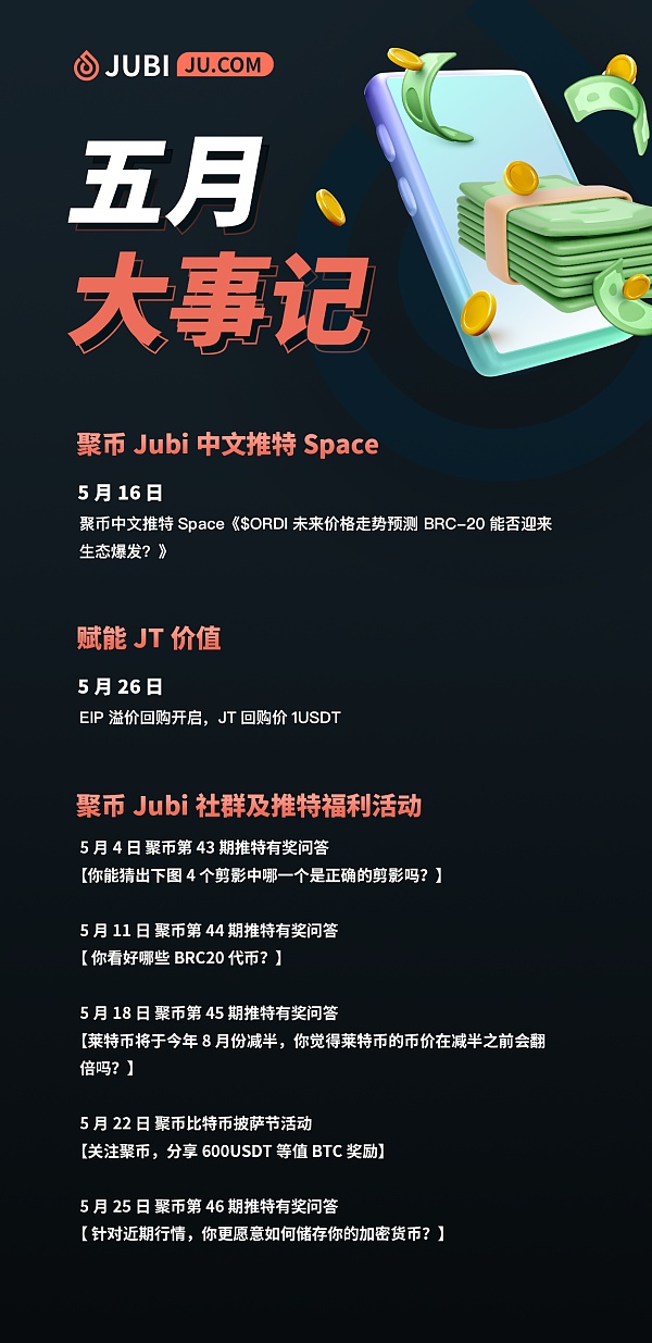 聚币Jubi 5月大事记|聚币热点话题Space超万人收听 推特福利活动每周上线
