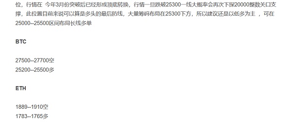 昨日午间给出的BTC:25200--25500多成功在昨日晚间激活,行情最低触及25321一线后反弹,最高触及27400一线,短线有900点以上的利润空间,恭喜跟上的朋友们