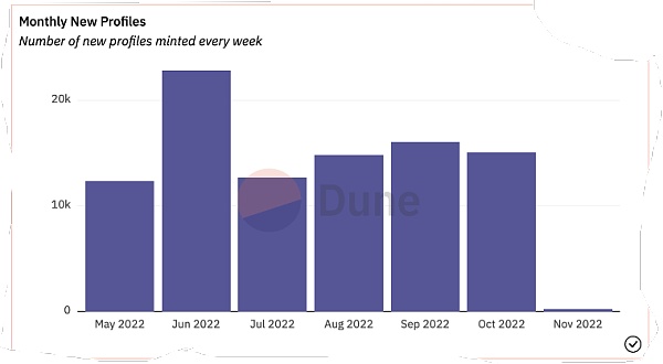 根据Dune用户niftytable制作的Lens数据面板,Lens Profiles每个月以1-2万的数量增长,这部分来自Lens公开信签署和合作项目活动。