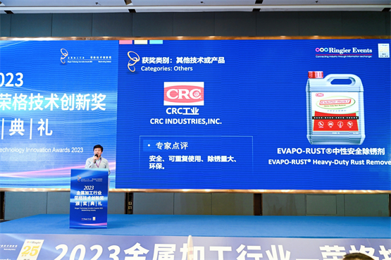 近日,由荣格工业传媒举办的“2023金属加工行业-荣格技术创新奖”颁奖典礼在上海盛大召开,CRC工业旗下Evapo-Rust®中性安全除锈剂凭借着安全、可重复使用、除锈量大、环保等强大功效,历经层层评选,脱颖而出,一举斩获了“2023金属加工行业-荣格技术创新奖”!