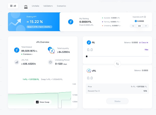 STFIL基于FVM网络,目前主要提供FIL的Staking功能,后面将为用户在此基础上提供LSD服务以释放质押流动性。