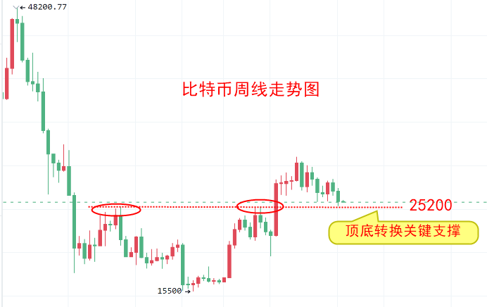 回到大饼上,我们之前给的26500附近的多单,也在周六这波砸盘中在25800止损出局。不过这次也可以看到大饼行情已经从26000为支撑下移到以25000一线支撑了。