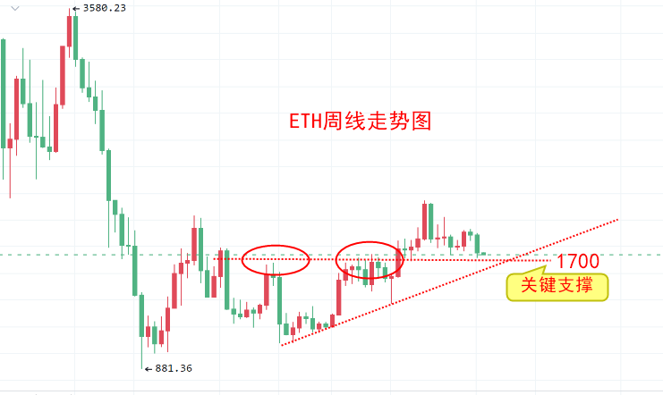 ETH的支撑也下移到1700附近了。当然,我的观点还是参考支撑位布局多单的。