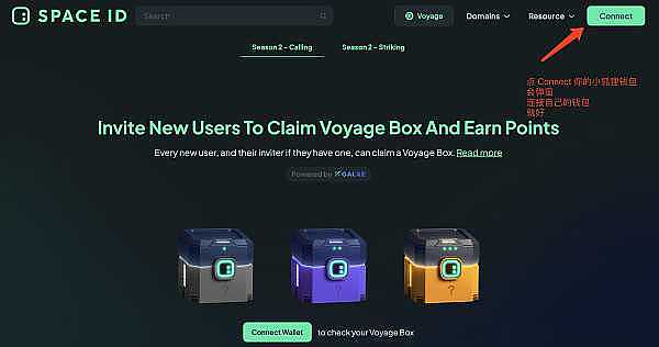 复制下面的链接到浏览器打开 SPACE ID 官网第二期空投打开空投箱子等待积分添加,等待空投: