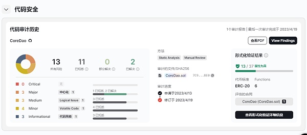 另外CoreDAOSwap代码也通过了Certik的审计,安全性得到了保障。