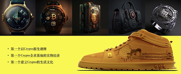 Xcart是一个以“比特币”为精神图腾的Web3原生潮牌,聚焦于“Web3生活美学范式革命”,目前社区汇聚了Web3行业内众多的比特币赛道OG、加密艺术家和KOL。Xcart以潮鞋为起点,将研发一系列crypto原生潮流商品,引领“Crypto in real life“全新的Web3品牌。