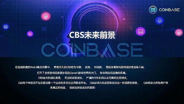 CBS是由美国交易量最大的加密货币交易所Coinbase与新加坡圣淘沙名胜世界有限公司共同发起,BlockchainReserch Institute、Draper、Partners、Binance等多家知名风投机构跟投,共同注资研发的集Web3.0、Defi、NFT、链游、元宇宙、DAO等元素为一体的一站式去中心化聚合平台。