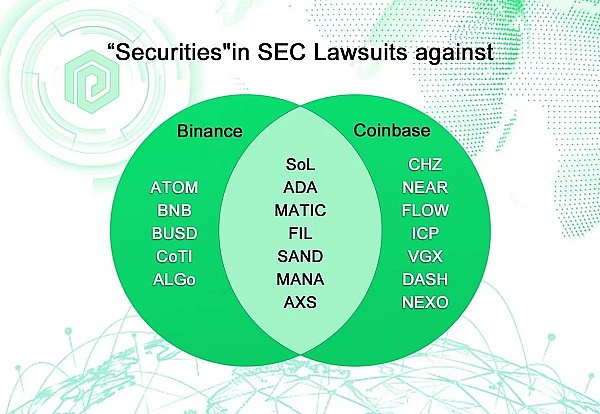 前言:近日,两家世界最大的加密交易平台Binance、Coinbase相继被 SEC 起诉,十多种主流加密货币被划定为证券并纳入 SEC 监管范围。受此影响,当时比特币价格在消息爆出后24小时内跌幅超过5%,跌破26000美元关口。币安币(BNB)也跌幅超过10%,跌破300美元关口。其他主流加密货币如以太坊、莱特币、瑞波币等也出现不同程度的下跌。