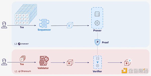 在大批量交易处理完成后,L2 运营者将结果返回至以太坊状态中,同时还有一个有效性证明用于验证链下执行的完整性。该证明保证同一批次中的所有交易都有效,并由链上验证合约自主验证。该操作允许以太坊将结果应用于其状态。