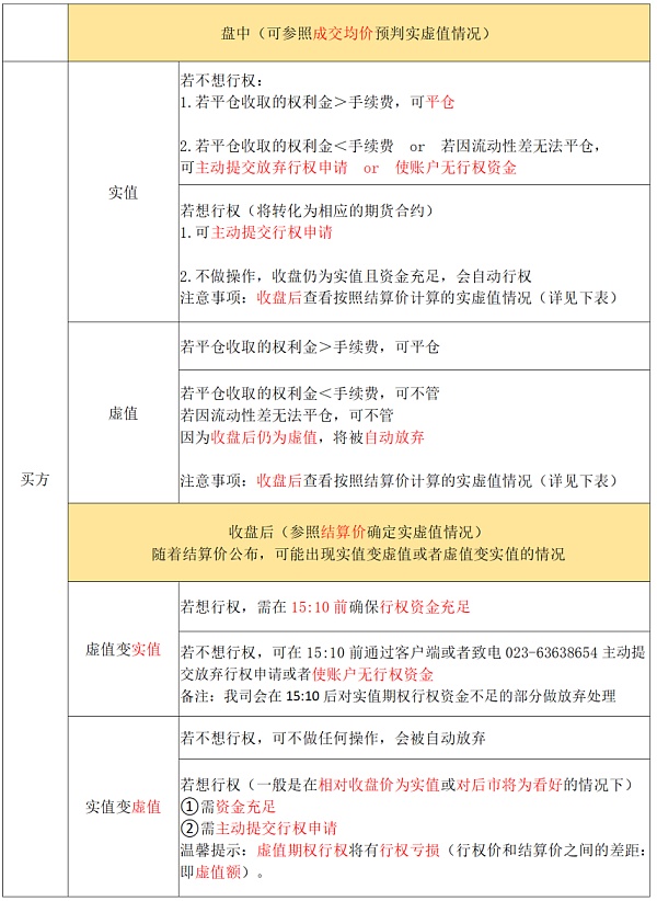 首先,判定期权为实值还是虚值,是用行权价和结算价作比较,而不是收盘价哟。盘中交易时段,可参照盘中实时发布的成交均价与行权价对比来预判期权实虚值情况,最终的实虚值情况由到期日结算价与行权价对比确定。