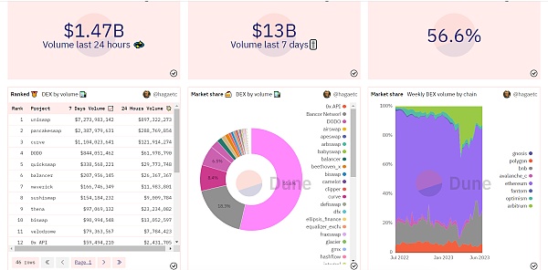 两年前发布了 Uniswap v3,这是链上流动性和 DeFi 的分水岭。如今,Uniswap 协议是最大的去中心化交易协议,处理了超过 1.5 万亿美元的交易,不仅作为公共基础设施,也是加密生态系统的重要组成部分,包括薄饼pancake等一系列DEX都是基于Uniswap 协议进行开发的,目前Uniswap常期占据着Defi将近60%的市场份额。