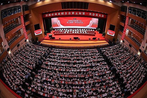 深圳市委常委、政法委书记余钢,深圳市委副秘书长胡芸,福田区委书记黄伟,深圳市委统战部副部长、市工商联党组书记李勇,深圳市社会组织管理局局长李文海,市中小企业服务局副局长姜青其,中国商业联合会会长姜明,中华人民共和国国史学会秘书长张星星,深圳市委原副书记、深商总会创会长庄礼祥,深圳市人大常委会原副主任邱玫,深圳市商业联合会永久荣誉会长庞大同等领导和嘉宾,TCL李东生、正威国际集团王文银、深投控何建锋、资本运营集团胡国斌、立业集团林立、雅昌集团万捷、三诺集团刘志雄、深圳农商银行李光安、香港太古集团郑家驹、澳门万国控股刘雅煌、中意集团赵心竹、富源实业缪寿良、兆驰股份顾伟、云天励飞陈宁、优必选周剑、同创伟业郑伟鹤、昌荣置业邓振龙、国瓷永丰源刘权辉、和鲜食品科技黄德满等1200余位知名企业家出席大会。