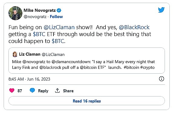 “我每天晚上都会说一个冰雹玛丽,拉里芬克和贝莱德拉出比特币ETF