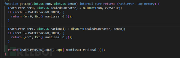 由于被攻击合约(0xF8527Dc5)目前的逻辑合约并不开源,我们只能从trace和之前的逻辑合约中找线索。我们发现代码中fork了compound的代码,并与hundred Finance相同,引入了第三方运算库。